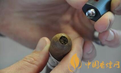 这类就非常简单粗暴了,雪茄剪内部有一个圆形的钻孔,拿起雪茄,冲击一下钻一个孔洞。钻孔的一个优势就是让烟气非常集中,而且几乎不会破坏茄帽,如果一个孔洞太小了,可以多钻几个。