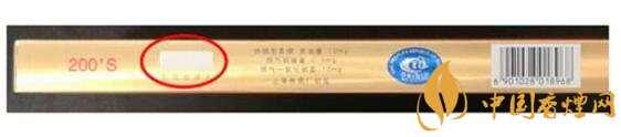 二、小盒防伪点“中华”(金短支)产品小盒采用软盒硬化的包装形式,烟支规格为75mm(长)*24.5mm(圆周)。小盒侧面英文字母“CHUNGHWA”采用荧光变色防伪油墨;在紫外光照下,白色“CHUNGHWA”会变成紫红色,一段时间后紫红色褪去。