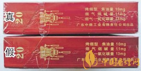 真烟采用机器烫封一次成型,封口较平整,拉线头形状规则,且边缘光滑,灯笼图案线条也较细;假烟采用手工电烙铁烫封,封口起皱较大,拉线头形状不太规则,灯笼图案线条也较粗。