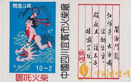 图6 四川宜宾市火柴厂出品于上世纪80年代的十枚套哪吒火花,本枚为闹海斗龙