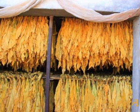 本阶段的主要目标是减少烟叶含水量,提高烟叶干燥度,阻止挂灰烟的产生。即稳定主要变黄的湿球温度,以每小时升温1℃,将气流上升烤房干球由40℃升到43-44℃,气流下降式烤房干球由40℃升到42-43℃。直到高温层烟叶尖部干燥,低温层烟叶勾尖卷边。烘烤12-16小时。必须注意的是,本阶段不可掉温或温度超过上限,否则,烟叶将产生大量的挂灰烟,若发现烟叶产生挂灰现象,即可将干球温度控在下限,可有效减少挂灰烟的产生。另外,烟叶的干燥目标不实现,应延时烘烤。