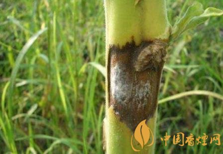 具体地看,烟草黑胫病发病茎基部呈现水渍状黑斑,病株叶片发黄、凋萎。纵剖病茎可见髓部呈黑褐色,干缩成“笋节”状,其间长有棉絮状菌丝体。