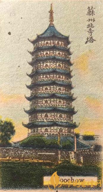 塔,是中国古代杰出的高层建筑,矗立在我国大江南北,体现了中国古代劳动人民的智慧。上世纪初,日本村井兄弟商会社曾出品过一套50枚的“中国古塔”卷烟画片,通过石印印刷技术,将一百多年前的古塔风貌浓缩于小小烟画上,风格迥异,颇具特色。今天,我们选取其中几枚加以展示,一起领略中国古塔的魅力。
