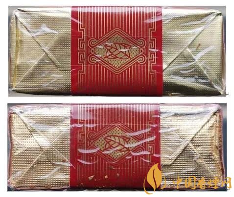 假冒卷烟:该款假冒卷烟烫金轮廓线套印偏差较大。(上真下假)