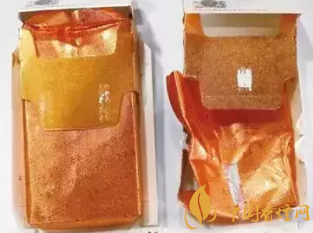 真烟小盒左上角“冬虫”和背面“夏草”两字有立体感,肉眼直观看上去如同宝石一般有凸起感,图案中间的闪光点要转动才能看到;假烟看上去平坦没有立体感,图案中间的闪光点每个角度都可以看到。(左真右假)