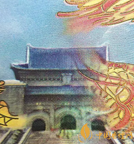 真烟小盒正面天空波浪纹、中山陵屋顶瓦片清晰连贯;假烟小盒正面天空波浪纹、中山陵屋顶瓦片模糊不清,时有时无。(上真下假)