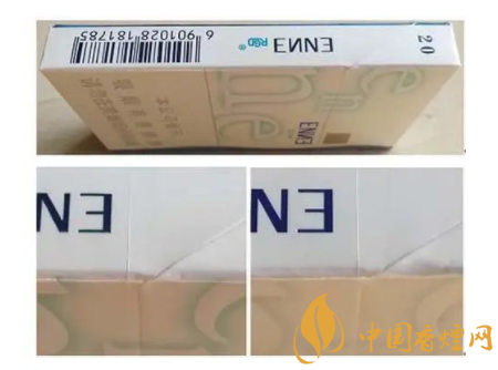(2)真品卷烟深蓝色“EN”字母商标凹凸处理,手摸凹凸感明显。假冒卷烟商标未做凹凸处理,手摸平滑。