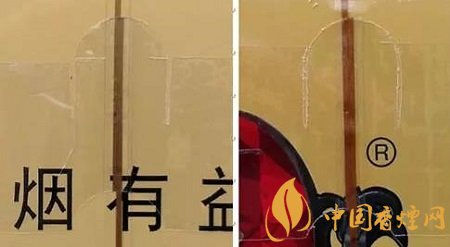 真品卷烟采用起凸工艺商标印刷,图案细节起凸完美,眼观、手摸凹凸感明显。该款假冒卷烟商标印刷起凸工艺较差,部分细节未做起凸,手摸图案平滑。(左真右假)