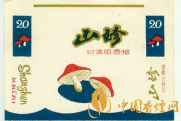 位列草菇、平菇、白蘑菇之上的香菇则是世界第二大食用菌,这种生长在木材上的真菌隶属于担子菌纲、伞菌目、口蘑科、香菇属,俗称香菌、香蕈、冬菇、平庄菇。素有“山珍之王”“真菌皇后”之誉的香菇,偶尔植根于烟标,如湘西自治区民族卷烟厂出品于上世纪80年代的“山珍”(图6)烟标,主版就突出了两个香菇的形象。