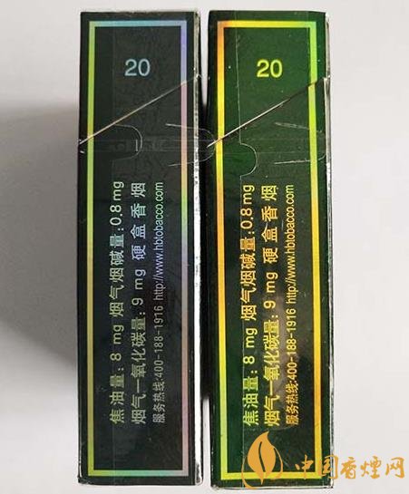 真烟包装拉带头位置凸出、拉带较窄,商标纸侧面色泽明亮,可变光,20数字位置较高;假烟包装拉带头位置靠内、拉带较宽,商标纸侧面颜色昏暗,不可变光, 20数字位置略低。