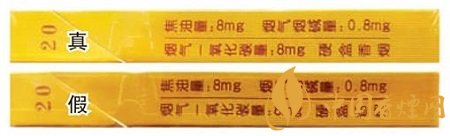 真烟钢印为机器动态打印,整体钢印较深且笔画较细,每个钢印间距不等,高低不平;假烟钢印一般为手工静态打印,整体钢印较浅、较模糊。