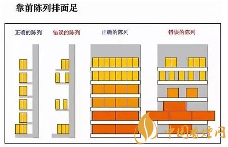 与摆放整齐的目的一样,靠前陈列能较好地展示商品形成量感和美感,充分利用陈列工具来增强陈列效果。如下图所示: