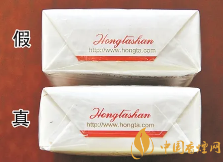 真烟透明纸烫封收缩均匀、自然,有烙铁痕迹,商标纸拐角折叠空隙较大;