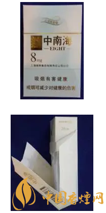 中南海(金8mg)由上海烟草(集团)公司北京卷烟厂生产,卷烟规格为(25+59)mm×24.6mm。