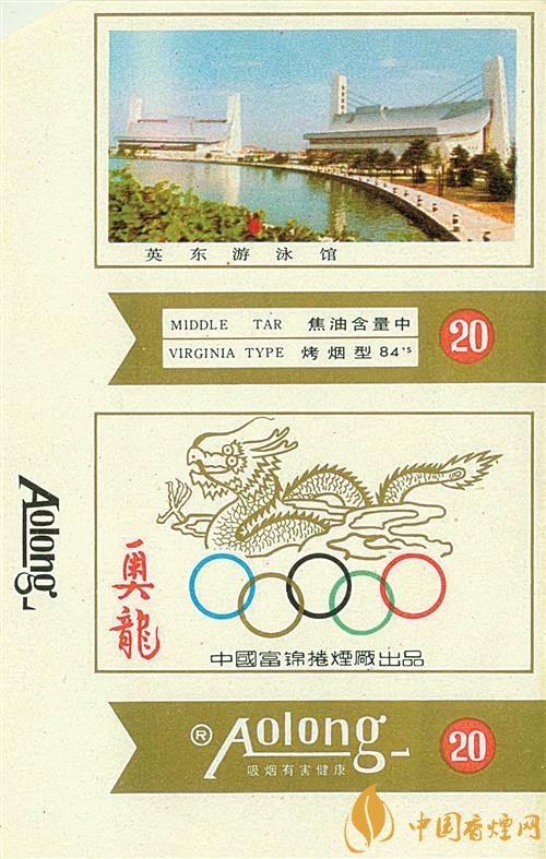 上世纪90年代,黑龙江富锦卷烟厂出品了“奥龙”烟标(图③),主版画面是霍英东先生捐资兴建的英东游泳馆;副版图案上方是腾云驾雾的神龙,下方是奥运五环标志。湖北武汉卷烟厂咸宁分厂于同时期出品的“奥博”烟标,主副版画面均为著名的古希腊雕塑《掷铁饼者》,在其下方是奥运五环标志、橄榄枝和地球图案。同时期,湖北郧阳卷烟厂出品的“搏冠”烟标,主版画面是一名男足运动员正在踢球;副版画面是双龙和足球,上方印有“冲出亚洲 搏击奥运”的字样。