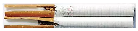真烟烟支采用单一醋纤滤嘴,长度为25mm;假烟烟支过滤嘴较短,长度约为21mm,与真品特征存在明显差异。