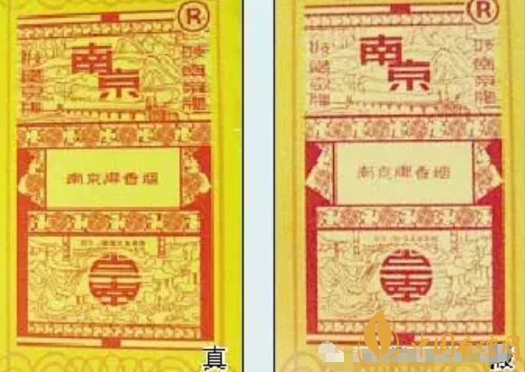 真烟条盒侧面、小盒底部的老南京注册商标图案,红色以外的底色部分发黄;假烟的老南京注册商标图案发白,图案模糊。#p#副标题#e#