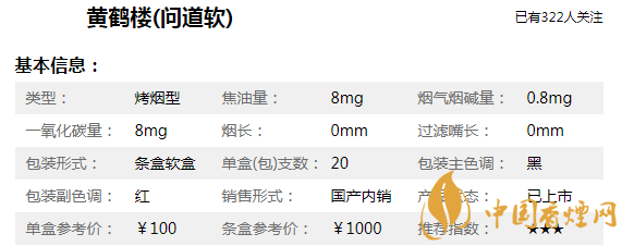 黄鹤楼问道价格品种 规格 包装 单包支数 焦油含量 单包价格