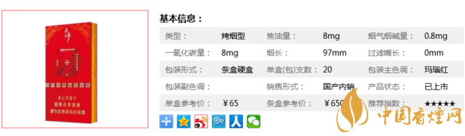 二、兰州细支飞天梦参数兰州细支飞天梦采用顶级烟叶原料+天水(“羲皇故里”、全球烟叶醇化的最理想基地)醇化+8段高端卷烟生产线+400道节点精雕细刻。用心制造,只为最好的品质保证。下面我们一起来看看它的参数信息:焦油量8mg,烟气烟碱量0.8mg,烟气一氧化碳量8mg。