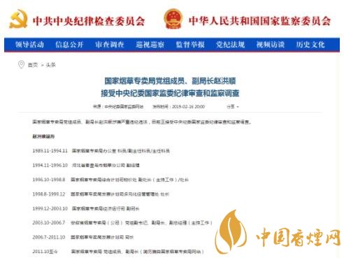 目前,国家烟草专卖局网站上关于赵洪顺的相关新闻报道及重要讲话已被删除。