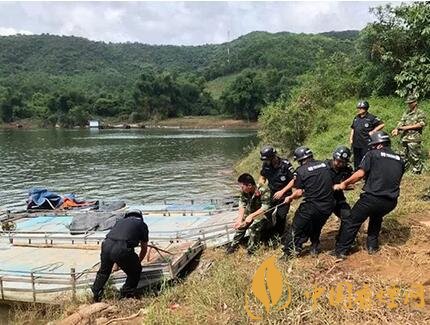 广西烟草打私总队联合东兴相关执法部门在北仑河打击走私卷烟及涉私船只。