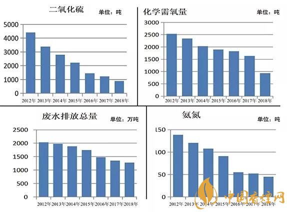 2018年与2012年相比,二氧化硫排放量由4418吨下降到889吨,降幅79.9%;化学需氧量由2532吨下降到932吨,降幅63.2%;氨氮由138吨下降到45吨,降幅67.3%;氮氧化物由4670吨下降到1417吨,降幅69.7%;烟尘排放量由1755吨下降到542吨,降幅69.1%;二氧化碳由259万吨下降到183万吨,降幅29%;废水排放总量由2033万吨下降到1279万吨,降幅37.1%。2017年与2012年相比,有79家卷烟工厂淘汰了燃煤锅炉,使用了清洁能源锅炉。