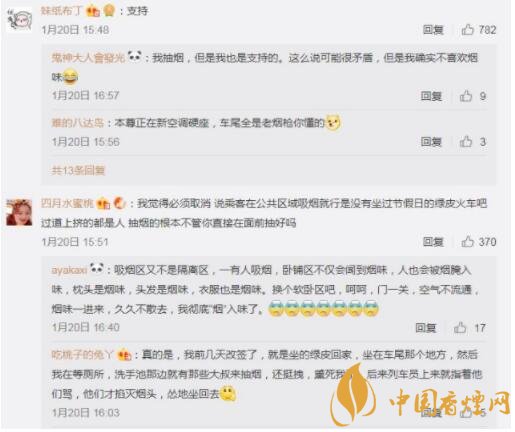 网友对列车全面禁烟的评论截图