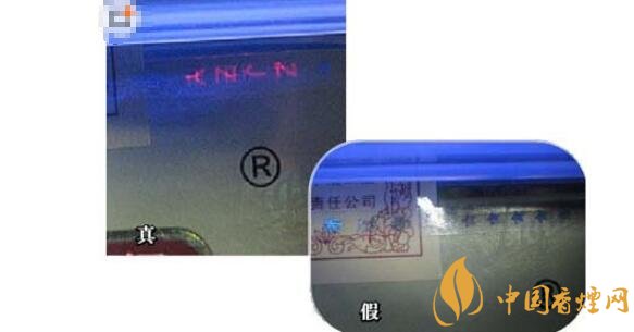 8、真品卷烟的商标采用的是凹印,文字边缘有锯齿状;假冒卷烟的商标一般采用胶印,文字边缘无锯齿状。