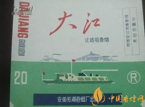 2、大江:70年代,大江香烟的零售价是0.36元每包,需要烟票一张或华侨券一张。据说该烟香味扑鼻,且又气息平和不呛嗓子。随着物价上涨,1984年之后,大江香烟的零售价也调整到0.50元每包。