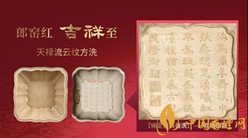 宽窄吉祥双中支以独特的郎窖红色为包装主色调,以天禄流云纹为主要纹饰,处处展示着吉祥长寿,福禄永昌的美好寓意。