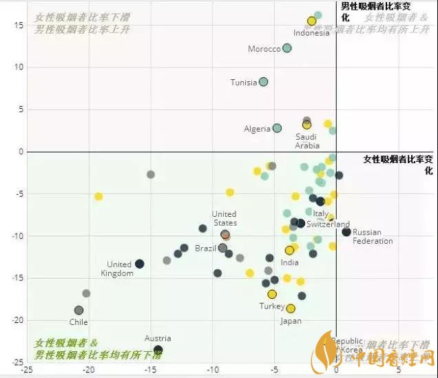 自2000年以来,几乎全球每个国家的女性吸烟者比率都有所下降,女性吸烟的危害有哪些,可能大家意识到女性吸烟的危害比男性还大。,而男性则迥然不同。