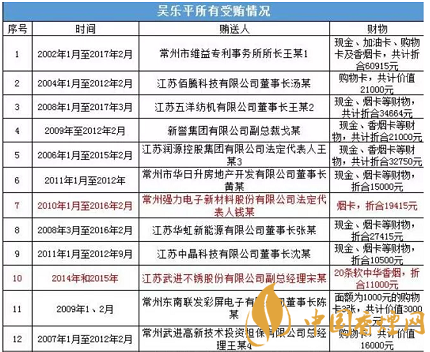 去年,裁判文书网公布原常州市武进区科学技术局局长吴乐平受贿罪的一审刑事判决。吴乐平多次收受武进不锈副总宋某、强力新材法人钱某、五洋纺机董事长王某等13家公司相关人员贿送的现金、烟卡、购物卡等,共27.63万。