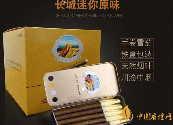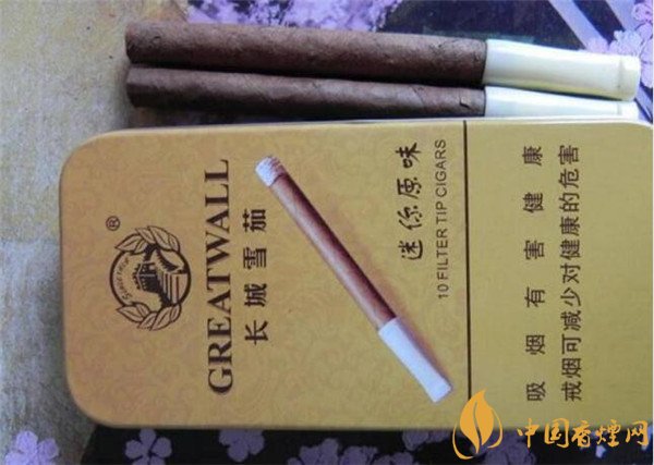 长城雪茄烟迷你原味整体设计不错,金黄色铁盒加奶黄色塑料滤嘴设计,还有选材也特别好,选用优质茄芯叶片卷制而成,烟气缠绵,口味自然而醇和,有种清新的甜润感。总的本说能给吸食者不错的体验。下面就从以下几个方面来分析这款长城雪茄烟怎么样。