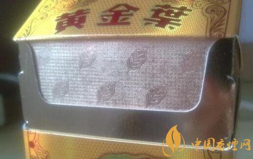 金色打造,也用上了闪光的设计,而且叶片烟标更是离不开,正面都有着暗淡底纹,上半盒身的图案包围着黄金叶红色粗字和那简单深造的烟标叶片,因为更改了粗字警示语的原因使到背面与正面一个样了。