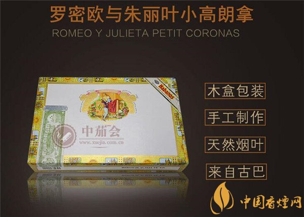 外观上论及古巴雪茄烟罗密欧小高朗拿怎么样,其实资深的茄友或者对这个品牌有些了解的茄友会发现一个问题,该品牌各系列的外包装相似度99.99%。包装上和罗密欧妙丽雪茄及丘吉尔系列一样,并没有什么不同。不过将盒子的尺寸调整了一下而已。外观都采用精致木盒装,运用经典的罗密欧与朱丽叶图像作为LOGO设计,LOGO色彩运用十分丰富,人物生动而具灵气。整体包装设计为白色为主,黄色为辅,黄色印花镶边设计很显档次。外盒上贴有专用的防伪标识。
