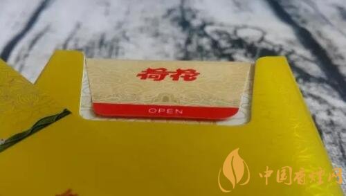 装载烟支的内盒上方,贴有印制着水纹图案的标签。手指触碰OPEN部位,向上掀起,便露出了过滤嘴。这样的封签,作用多是保湿保润,防止烟支干燥变硬。娇子宽窄香烟中,也有几款采用这样的封签设计。