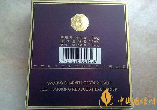 烟盒周围辅以金色镶边,泛彩鎏金,同时也显得中规中矩。主色调为酱紫色,色彩厚重沉稳,高贵但不张扬,厚重又不是喜庆。广东中烟双喜典藏逸品怎么样?下方是理化指标:焦油量:8mg 烟气烟碱量:0.8mg 烟气一氧化碳量:10mg,最下方是条码及公司名称。