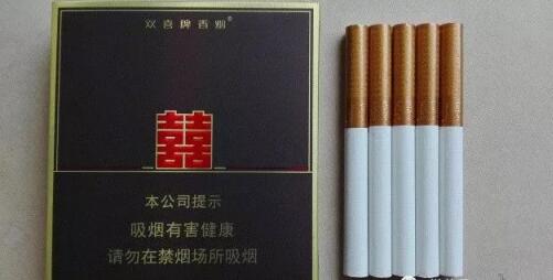 烟盒正面上下分为两部分,上部分顶部写有金色“双喜牌香烟”,双喜典藏逸品上部分底部居中印有一个大红色的“囍”字,深沉、凝重、典雅、大气、喜庆,下半部分为“公司版”警语。整个正面图案比较简约,但含义不简单,深色的凝重与红色的喜庆,既矛盾又统一,广东中烟双喜典藏逸品怎么样?整体看来又非常的协调,厚重中透着喜庆,朴实中不是华丽。