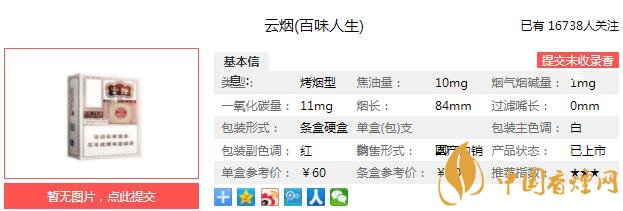 三、云烟百味人生香烟参数