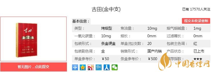 一、古田金中支香烟价格