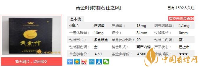 一、黄金叶茗仕之风香烟价格