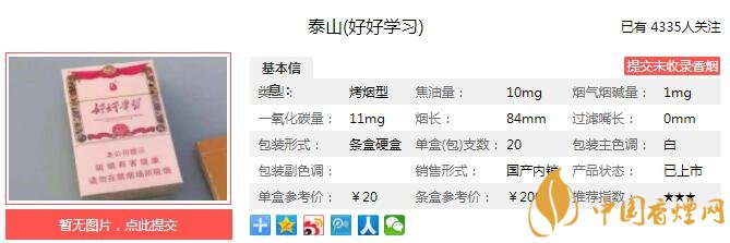 以上便是由烟吧小编为大家介绍的关于泰山好好学习口感好不好 泰山好好学习价格介绍的相关信息,想要了解更多有关内容请点击:红塔山硬金出口价格 红塔山硬金出口口感及参数介绍