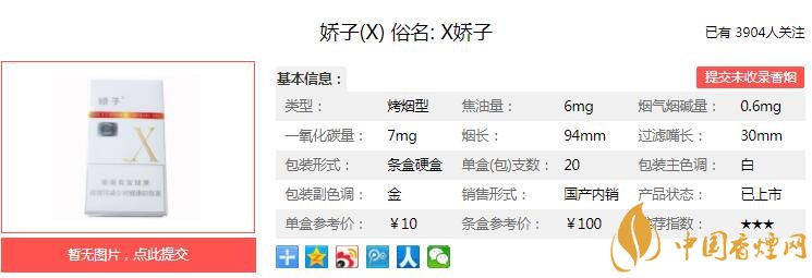 采用环保、健康、安全的纯天然水果香料,通过精心调配使得烟草香与果甜香浑然一体,橙香飘逸。娇子低焦经典,橙香风格,品质优异,定位年轻时尚人群,对他们而言,抽烟不仅仅是满足生理需求,更重要的是表达独立、时尚、积极的生活态度,显示优雅、散发诱惑。经烟吧小编市场调查娇子X售价为10元/包。