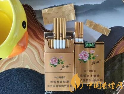 一、外包装欣赏两款牡丹的整体颜色十分相近,均为金色的主色调,但是金细支的颜色要更深一些。两款牡丹正面的主图案基本一致,只是大小略有差异,都是牡丹花加牡丹二字,下半部是警示标语。在烟盒开封处,金细支的设计十分简洁,烟盒处黑色条纹下写着“SUPER SLIMS”,意思是超级苗条,也是在体现它是一款细支烟,在烟盒正面的左上角有着一竖排牡丹香烟的英文。