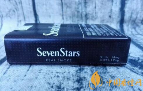 左侧面印有焦油和烟碱的数值指标。14mg和1.2mg的数值含量,与我所抽的免税软灰相同。Seven Stars系列中,除了14mg焦油含量之外,较为常见的还有7mg焦油的数值。