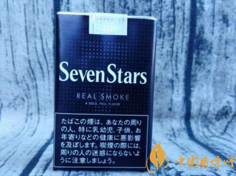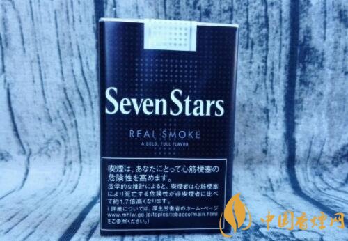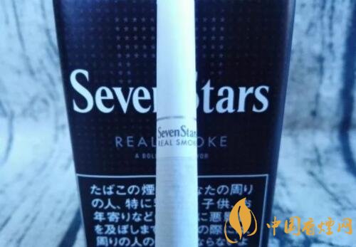 烟盒的正反及左右两侧均以白色的小五角星为图案,横平竖直地排列开来。与其它Seven Stars版本一样,位于烟盒正反两面中间都有阿拉伯数字“7”的标识。REAL SMOKE,直译成中文是“真烟,真正的香烟”之意。A BOLD FULL FLAVOR,中文意思是“烟味十足”。综合意思,是说此款日税黑七星的品质之高。