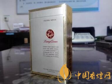 又是款浅金色调为主、修饰以深色金边框的包装设计,有些像芙蓉王硬黄的造型。圆圈中的金龙造型,更像是抽象画法的,没有真龙或者其它带有龙的图案香烟的丰满与霸气。