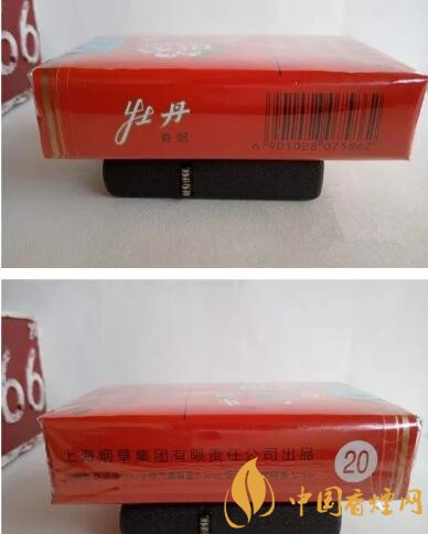 烟盒的左侧有牡丹香烟字样,还有这款烟的商品条码。