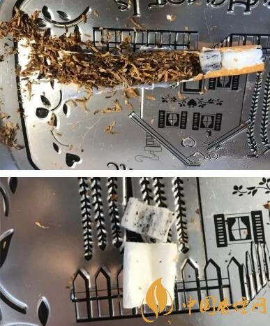 出于好奇,把其中的一根进行了分尸。可以看到有两段过滤嘴,一段加了活性炭,一段就是普通的过滤嘴。