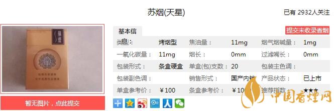 三、苏烟天星香烟参数